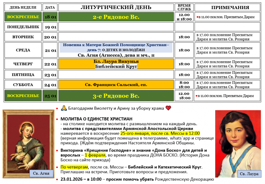 – воскресенье после Святой Мессы в 12.00