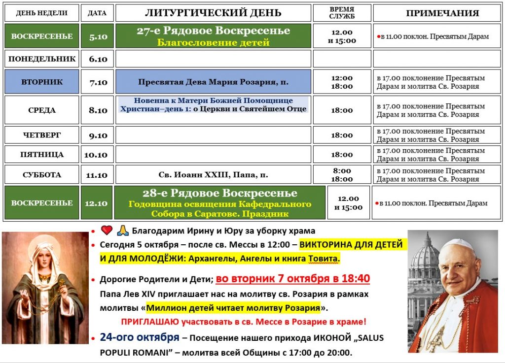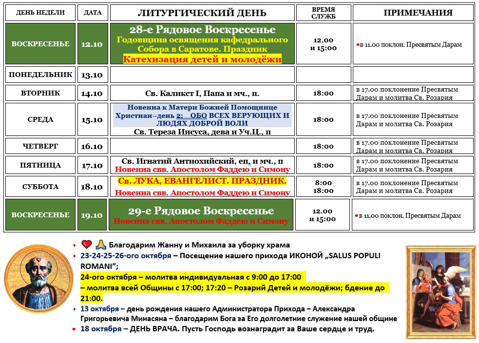 (во время Великого Поста) * 12:00 – Крестный Путь