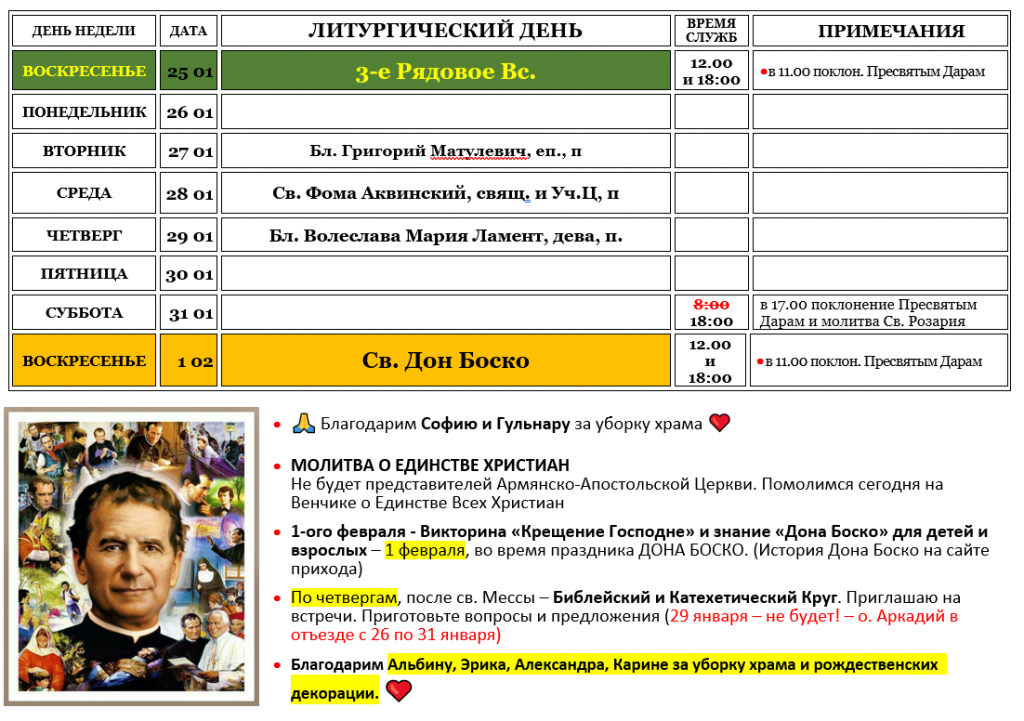 ПРИХОДСКИЕ ОБЪЯВЛЕНИЯ