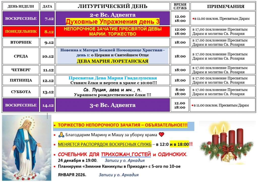 – второе воскресенье месяца после Святой Мессы в 12.00