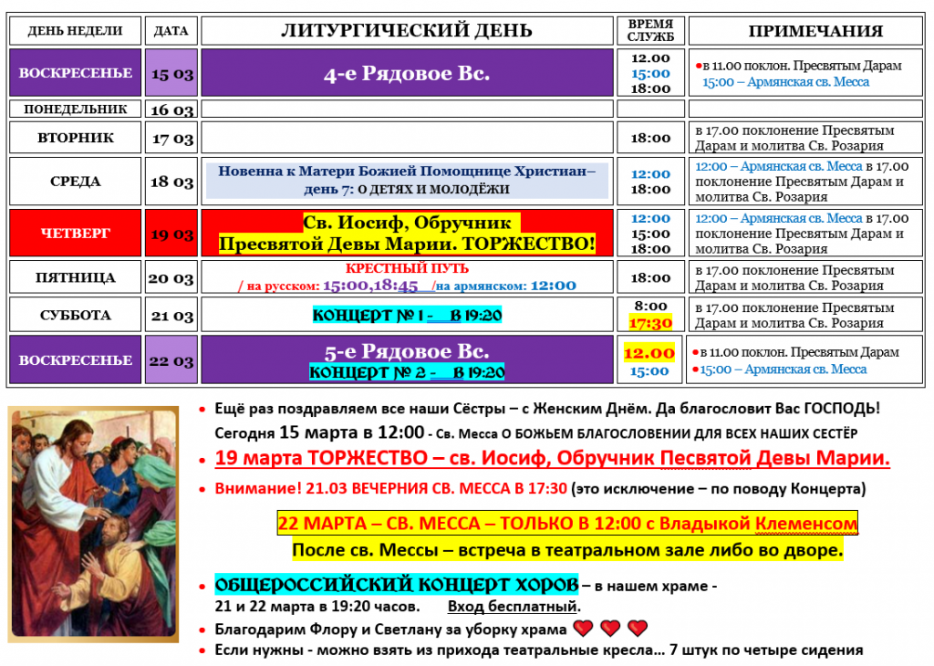 – воскресенье после Святой Мессы в 12.00